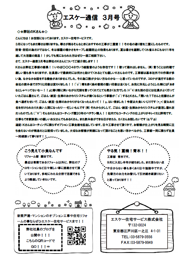 お世話になっております。エスケー住宅サービスです。